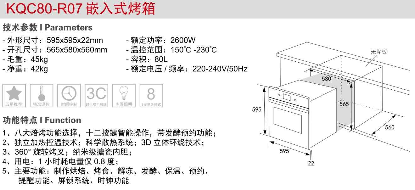 KQC80-R07嵌入式烤箱